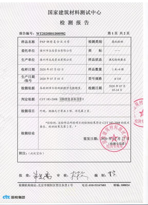 国家建筑材料测试中心检测报告